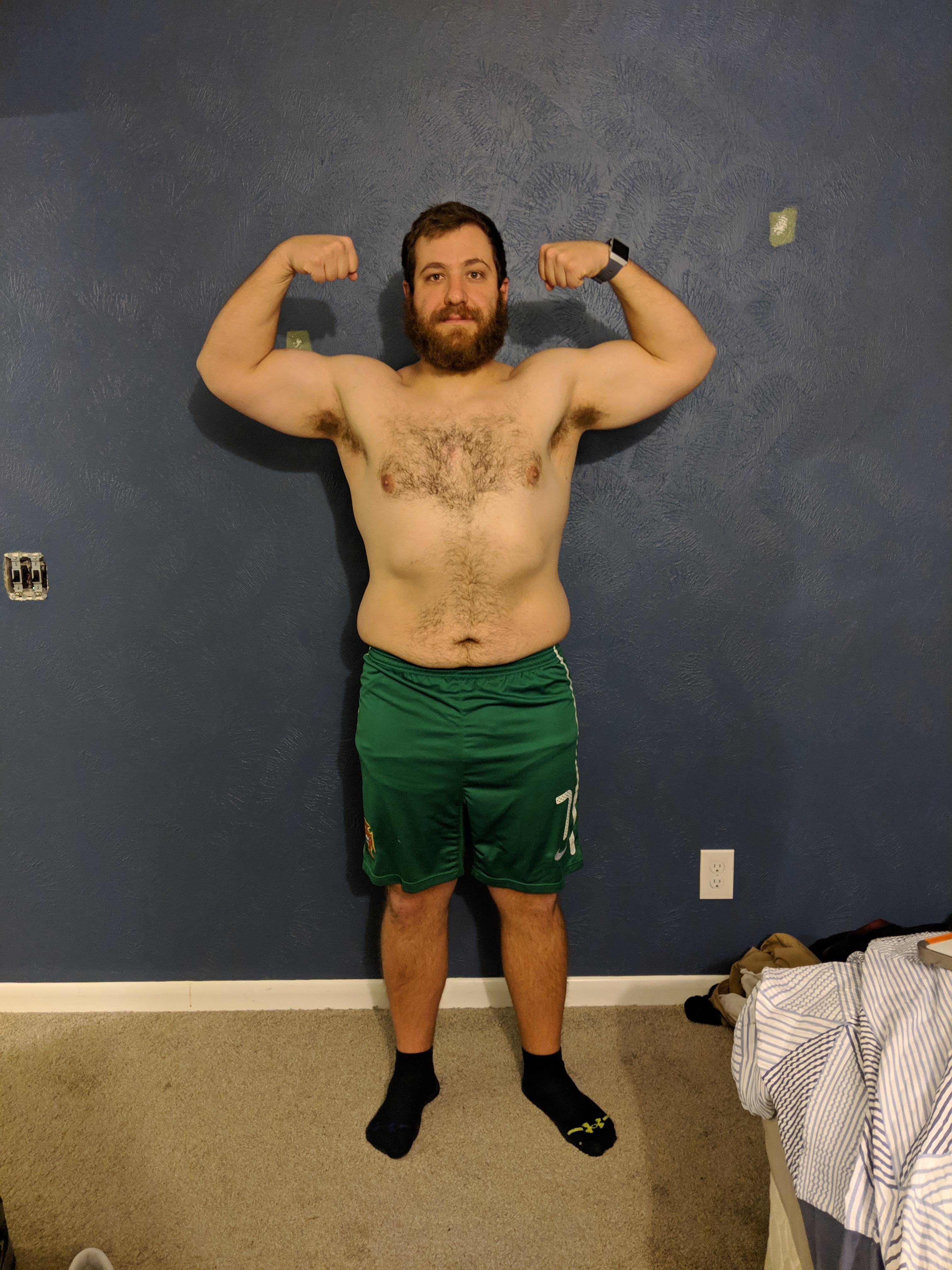 Shortly after my graduation in May of 2014, I knew there was a problem and I began my weightloss journey. After a year, I got down to 255 pounds, which I thought was good progress. However, that progress was stalled and I bounced around from 240-255. Fast forward to January of 2018, I weighed in at 255 pounds and that’s when I made a real commitment. I buckled down in the kitchen and the weightroom, and in August, I got all the way down to 220 pounds. However, as a football coach, I’m on the go 6 days a week, food prep got inconsistent during the season and now my weight has jumped back up to the 230s.